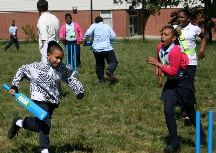 Charles Silberman, the Physical Education instructor at Highland Park E.S. said, “The school was provided with a set of equipment to keep, and the instruction provided to the students was easy to understand, age appropriate, and it allowed the students to start playing a modified version of cricket within a thirty minute class period.”