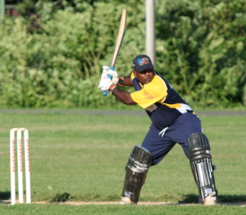 Image - Cameron Mirza goes to drive on his way to 38 for the Atlantic All-Stars. [Copyright: DreamCricket.com]