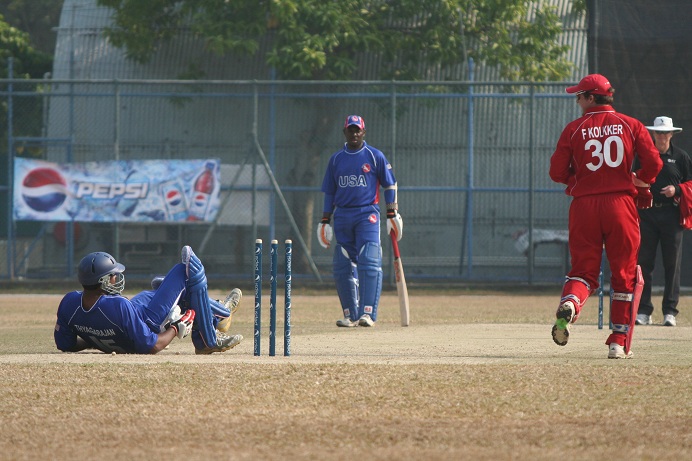 USA was reduced to 85 for 4 and from that point forward, USA’s batsmen went into a shell. Anything short and wide that had previously been punished to the boundary was now being gently tapped to a fielder in the circle. It was clear the momentum had shifted Denmark’s way.
