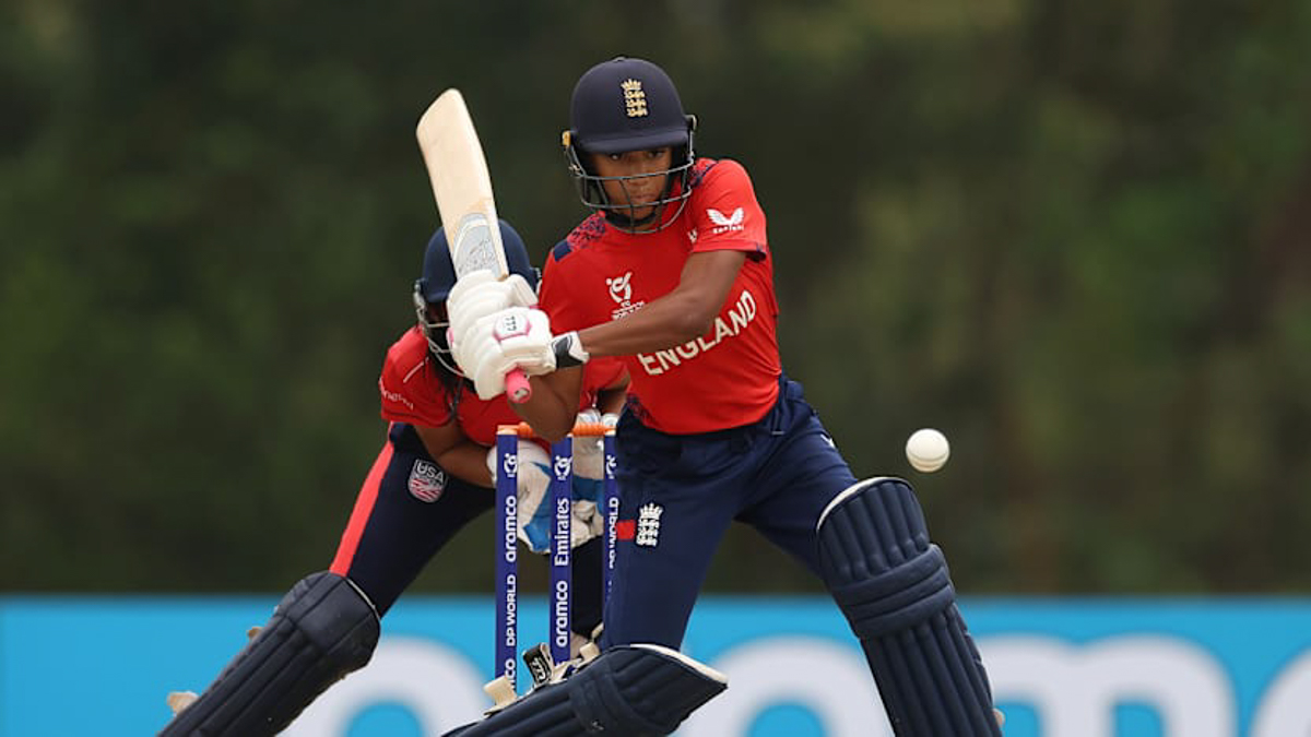 In a battle to decide who would top Group B at the 2025 ICC Women’s U19 T20 World Cup, it was England who outmuscled USA behind a blistering half-century from opener Davina Perrin as USA saw their first innings total of 119 for 5 chased down with 5.4 overs to spare in an eight wicket defeat at Johor Cricket Academy Oval in Malaysia. Perrin was named Player of the Match for her 74 off 45 balls, including nine fours and three sixes, to top-score in the chase.