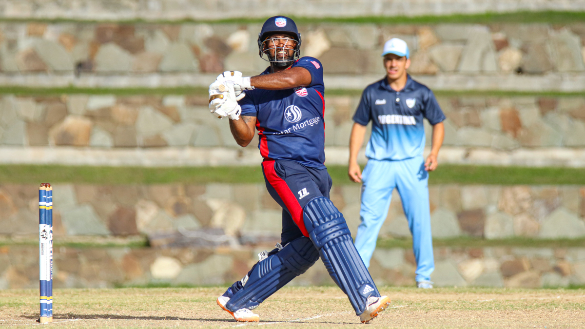 Rusty Theron struck USA’s first blow in the second over, bowling Pedro Baron for 6 defeated on a drive. Hutchinson then produced a double-wicket maiden in the third, getting Lautaro Musiani to sky a drive to Jaskaran Malhotra at mid-on for 4 before Alejandro Ferguson pushed outside off to edge behind to Monank Patel for a second-ball duck making it 11 for 3. Theron made further inroads in the fourth over, bowling Alan Kirschbaum for 4 with another full length delivery.