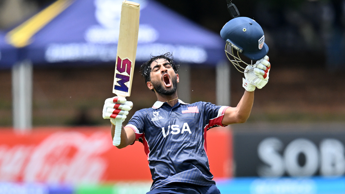In three prior appearances at an ICC Men’s U19 World Cup, USA’s batters had accumulated a total of six half-centuries but nobody had come close to crossing three figures for the red, white and blue. That all changed on Sunday in Bulawayo as 18-year-old Georgia batter Nitish Sudini scored an unbeaten 117 off 133 balls to catapult USA from 40 for 5 to a final total of 253 for 9 before rain denied them a chance at victory as play was halted one over into New Zealand’s chase and never resumed with the match ending as a no result at Queens Sports Club.