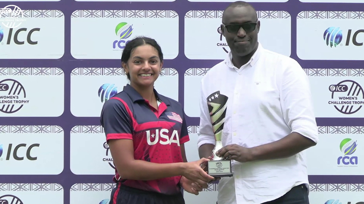 th over on strike and punched a six back over Sharma’s head before a single put Gargi Bhogle on strike. The left-hander edged a four past the keeper Poddar to bring USA two runs away from victory before she ended play two balls later driving her third boundary over wide mid-off to end 12 not out. Vaghela was given the Player of the Match award after finishing unbeaten on 35 off 29 balls despite having offered two chances along the way to a short target that set up by USA’s excellent bowling display in the first innings.